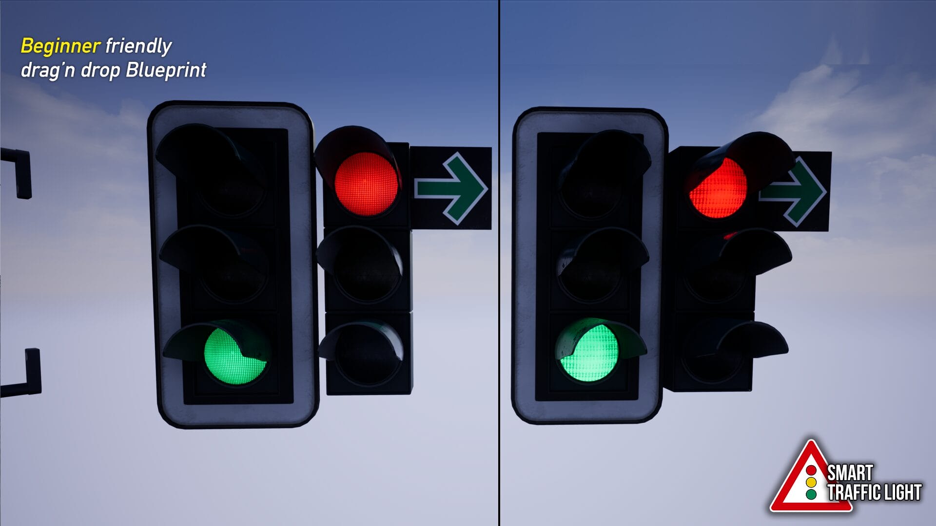 The ingenious, simple and cheap traffic light tool is now available in the Unreal Enigne Marketplace. This tool saves you not only effort, but also a lot of time. Since time “=” money you will not only save time but also money! Also check out the Smart Cable Connector to create power lines in seconds without any effort.