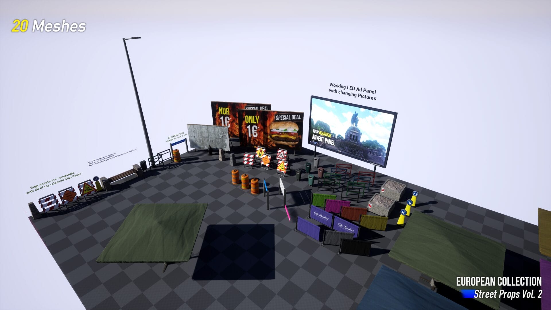 he European Street Props Asset Pack Volume 2 is now available in the Unreal Engine Marketplace !